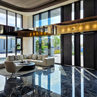 此建案大廳使用霧面薄板,素雅華麗,也比亮面更好清潔。